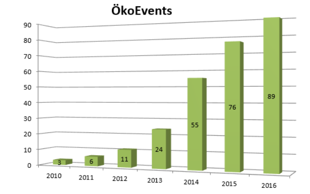 Im Jahr 2016 wurden in Wien bereits 89 Veranstaltungen mit dem Prädikat ÖkoEvent ausgezeichnet. Seit der Einführung des Logos im Jahr 2010 hat sich die Anzahl der ÖkoEvent-Veranstaltungen vervielfacht, im Juni 2017 wurde die 300ste ÖkoEvent Veranstaltung mit dem Prädikat versehen. Insgesamt haben seit 2012 bereits mehr als 1,5 Millionen Besucher*innen ÖkoEvent-Veranstaltungen besucht.